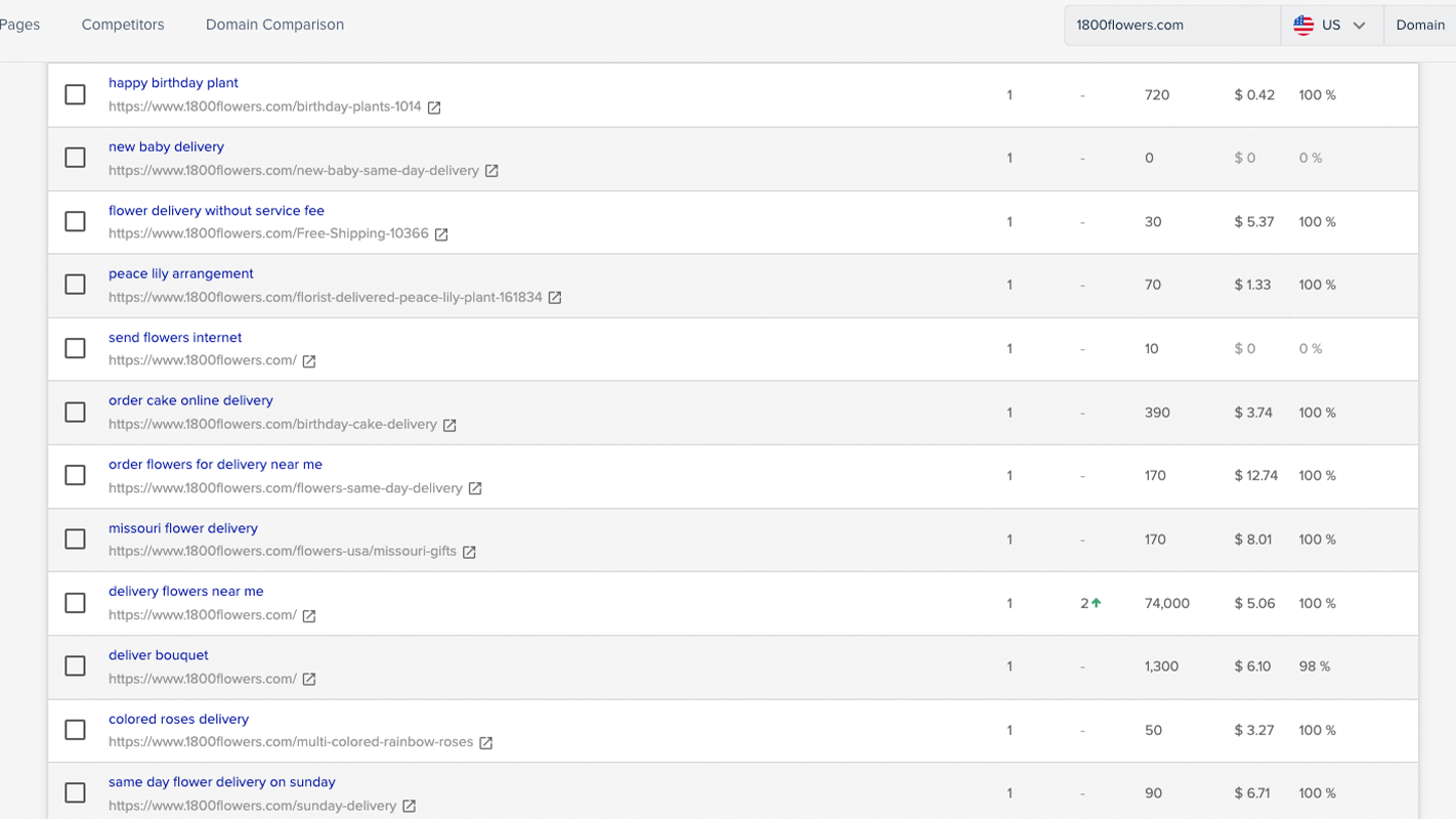 - Compare keyword rankings of two or more domains